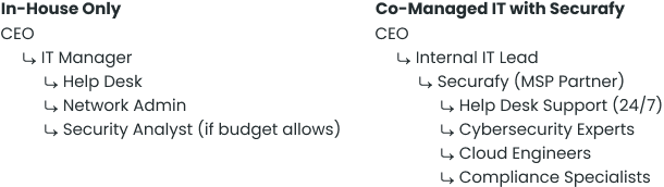 | SMB In-House Team (Typical) | Co-Managed IT Model (Ideal) | |