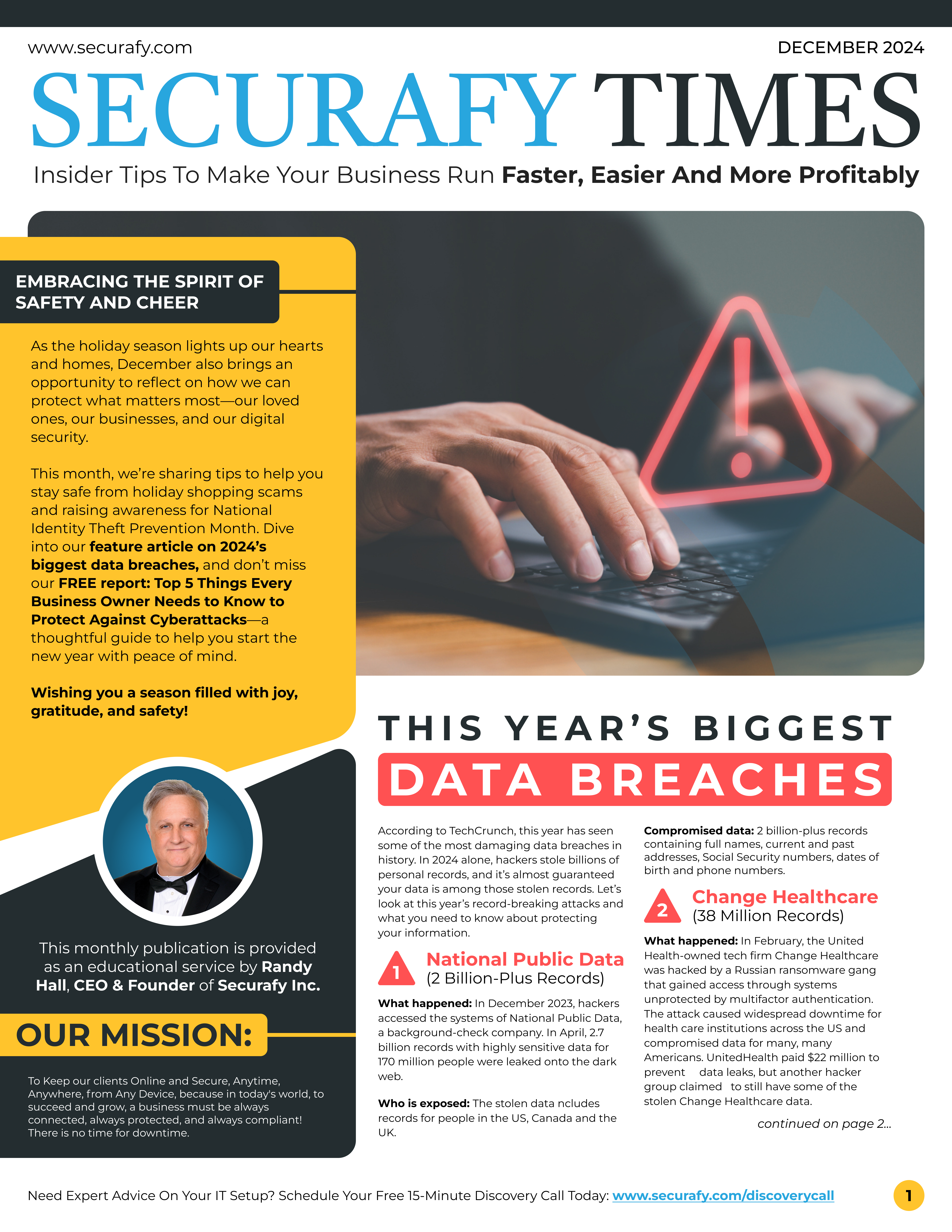 In addition to these resources, Securafy offers a range of free services to help businesses evaluate and strengthen their security posture, including a Dark Web Scan, Network Assessment, Cybersecurity Assessment, and a complimentary IT Buyer’s Guide.
